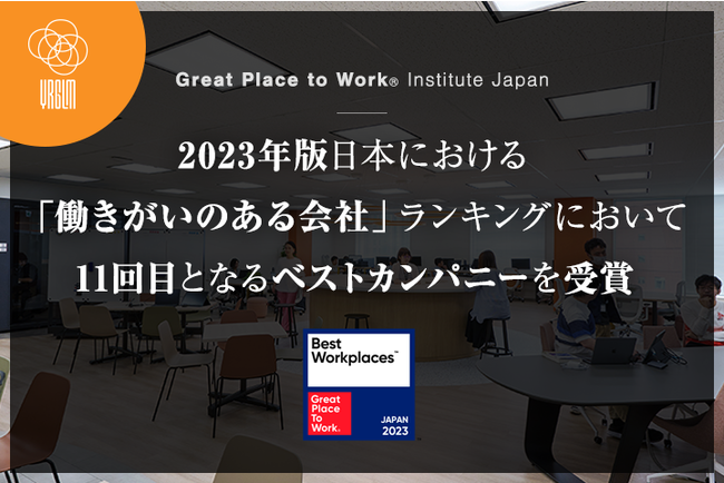 株式会社イルグルム(本社:大阪府大阪市北区 代表取締役:岩田 進、以下「イルグルム」)は、Great Place to Work(R) Institute Japan(以下、GPTWジャパン)が実施する2023年版日本における「働きがいのある会社」ランキング 『中規模部門(従業員100~999人)』において、11度目となるベストカンパニーに選出されたことをお知らせいたします。