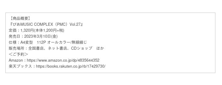 『ぴあMUSIC COMPLEX(PMC) Vol.27』コンテンツ