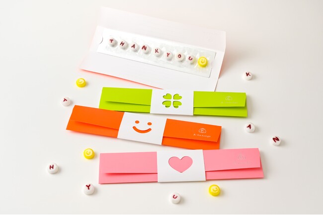 レターセットをイメージした罫線付きの包みを開くと、「THANK YOU」とあめのメッセージが現れます。