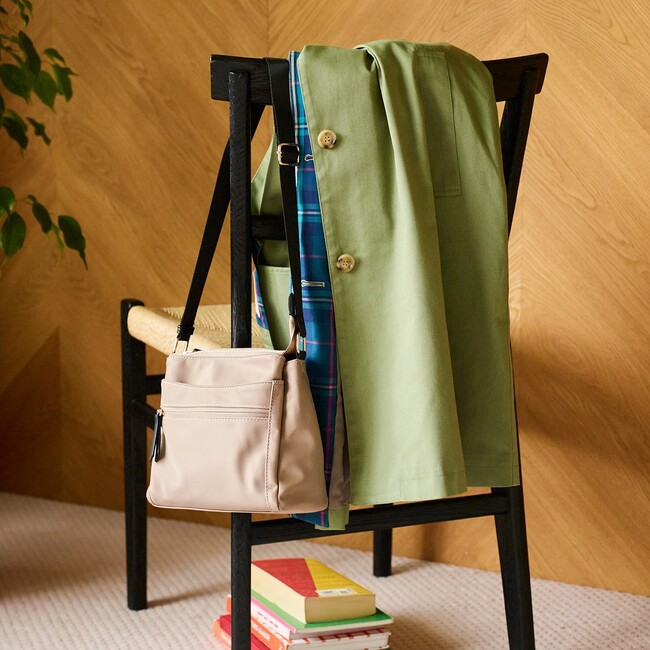 衣類の仕分けに便利なクロスケースセットは、使わない時コンパクトに畳めて持ち運びも便利。持ち手のついたスクエアポーチはマチが広く、コスメやステーショナリーを入れるのにぴったりなサイズ感です。