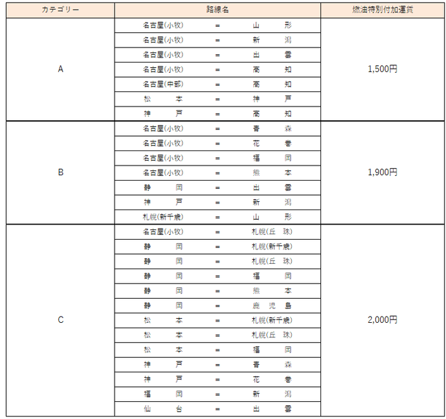 なお、燃油特別付加運賃は、シンガポールケロシン市況価格および為替レートの変動に応じて、1ヶ月毎に見直しております。