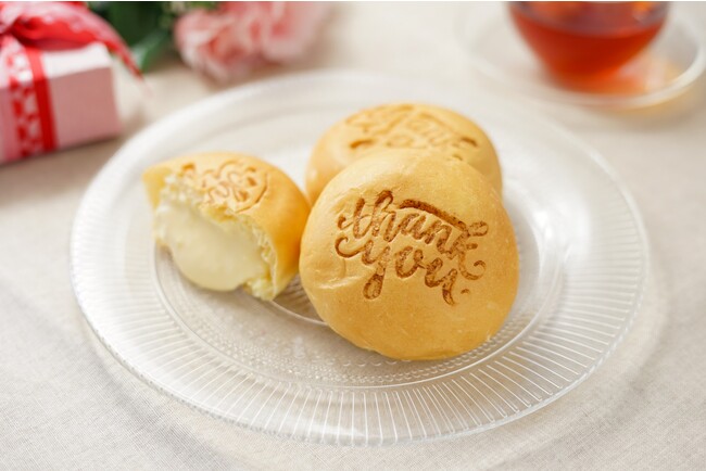 八天堂の定番くりーむパンカスタードに「thank you」の焼印を施した、見た目にありがとうが伝わるお品です。
