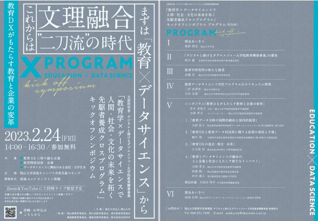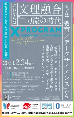 【岡山大学】「教育学×データサイエンスで人間・社会・文化の未来を拓く 先駆者養成クロスプログラム」キックオフシンポジウム〔2/24金, ハイブリッド開催〕