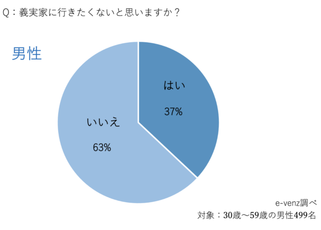 男性の37%、女性の59%が「義実家に行きたくない」と回答しています。女性の方が20ポイント以上多い結果となりました。