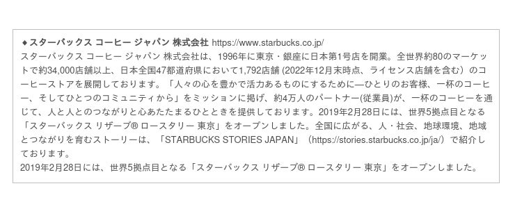 「スターバックスコーヒージャパン株式会社」のプレスリリース