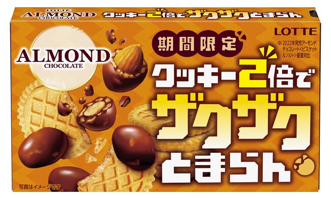 株式会社ロッテは2月28日(火)に、ザクザクとした食感がとまらないアーモンドチョコレート「クッキー2倍*でザクザクとまらんアーモンドチョコレート」を発売いたします。