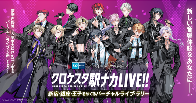 本イベントでは、東京メトロの3駅(新宿駅、銀座駅、王子駅)に4箇所ずつ、viviONが運営するSNS連動型キャラクターソングプロジェクト『Clock over ORQUESTA』(以下、『クロケスタ』)の各キャラクター音声や音源を設置、各スポットを巡回することで「スペシャルライブ音源」やミニボイスドラマを楽しむことができます。