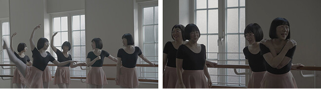 撮影本番前にバレエ経験者のそっくりさんの掛け声で基本の振付を練習する中、顔の向きや開脚角度に苦戦し、「あぁ~~怖い怖い、ジェットコースターより怖い!」と、思わず奇声を上げる江里子さん。それでも何度か繰り返すうちに、全員の動きが揃ってきました。撮影直後、自分たちの映像を真剣なまな差しでチェックしつつ思わず吹き出してしまう美穂さん。そしてようやくOKが出ると、安堵の笑みがこぼれます。