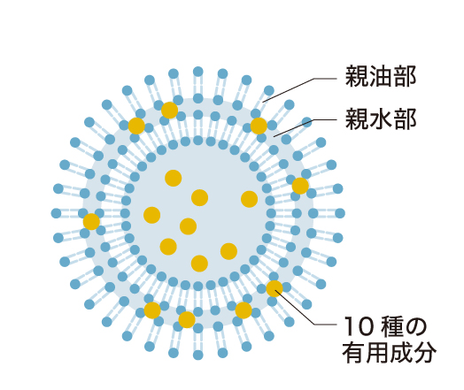 生体膜に近い構造を持つ大豆由来のレシチンから生成されており、浸透率*1が高いのが特徴です。閉じ込められた美容成分を角質層のすみずみまで送り込みます。独自技術により美容成分を均一化することで、キメ細やかでなめらかなテクスチャーを叶えます。