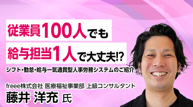 【2/24(金)開催 介護業界向けウェビナー】従業員100人でも給与担当1人で大丈夫!?シフト・勤怠・給与一気通貫型人事労務システムのご紹介 登壇:freee株式会社 主催:CareTEX事務局