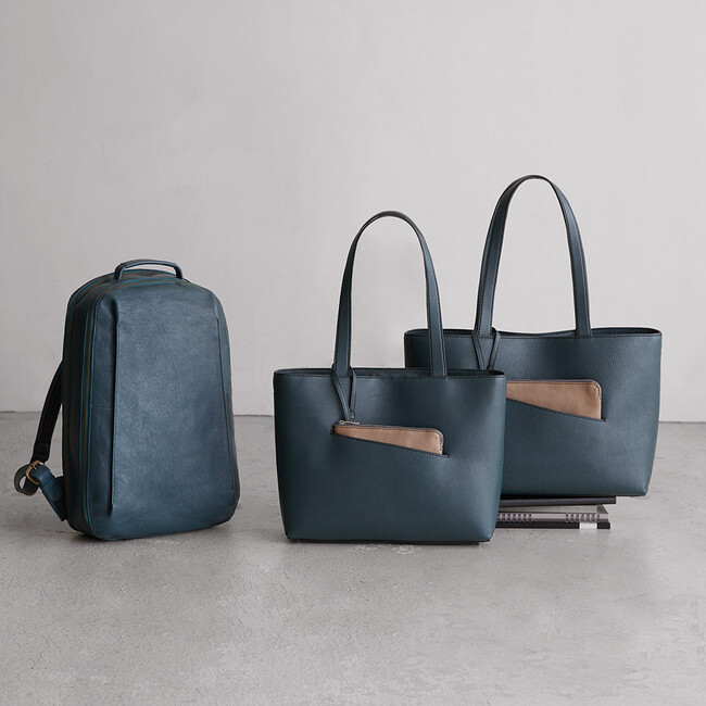 「Gear」シリーズで使用している、ナチュラルなシボを持つ品のあるレザーは、バックパックやトートバッグにも使用されています。同じカラーを展開しているため、合わせることでスマートにお使いいただけます。