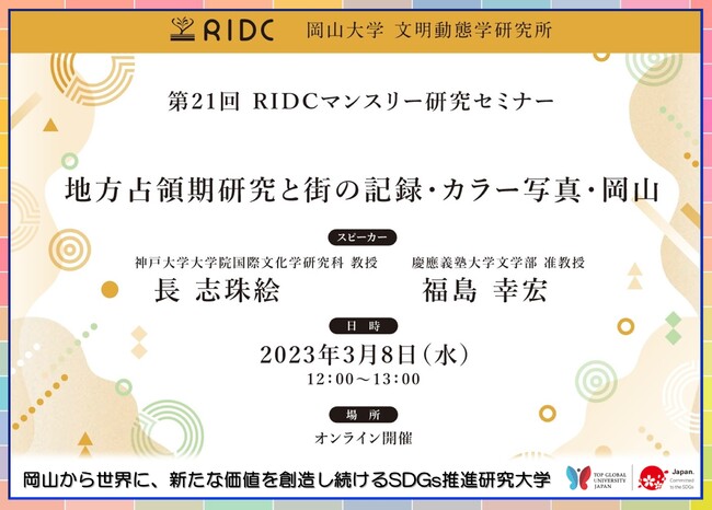【岡山大学】文明動態学研究所「地方占領期研究と街の記録・カラー写真・岡山」〔3/8水, オンライン〕