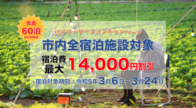 14,000円がもらえる宿泊キャンペーン!3/6から3/24までの期間、銚子市でワーケーションしませんか?