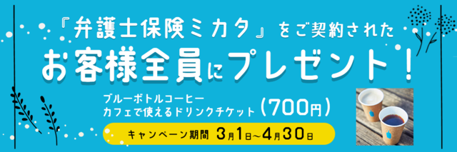【弁護士保険比較】「弁護士保険ミカタ」ご成約で「ブルーボトルコーヒー カフェで使えるドリンクチケット(700円)」もれなくプレゼント【3・4月限定キャンペーン】