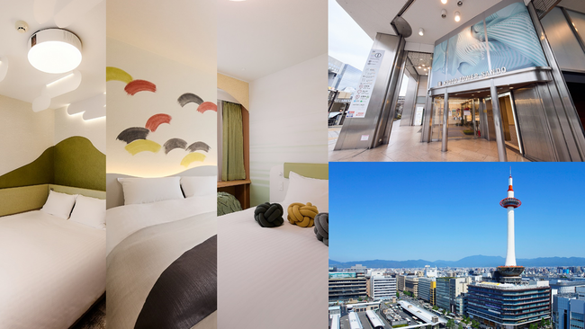 「京都タワーホテルアネックス」では、同大学の学生がデザインしたコンセプトルームを3室造成。京都の自然や文化をモチーフとした客室でお過ごしいただけます。2023年3月1日(水)より、各1日1室限定でご宿泊いただけます。また、「京都タワービル」では、烏丸通と塩小路通の交差点に面したビル入口付近に、同大学大学院卒業のアーティスト・藤崎了一氏がデザインしたパブリックアートを設置しました。