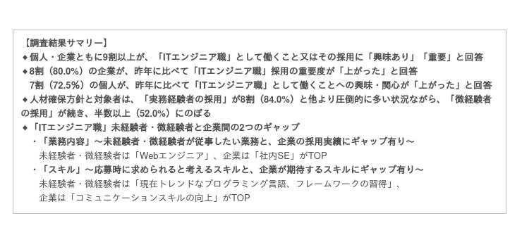 半数以上の企業がITエンジニア職採用に「微経験者※1採用」を導入中 ~ 未経験者・微経験者と企業が考える 必要スキル や 業務内容にギャップ ~