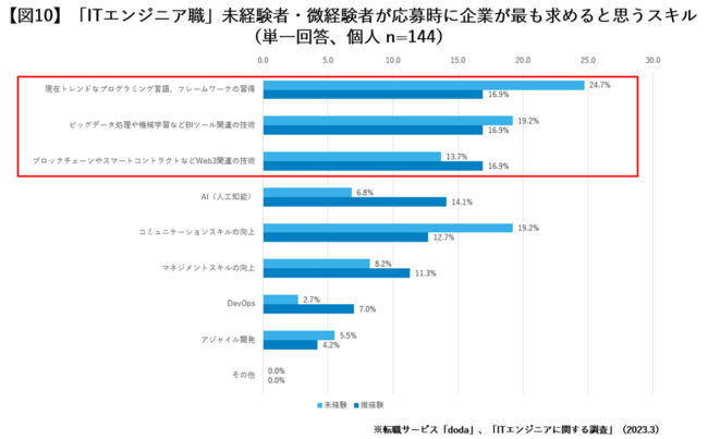 未経験者・微経験者は「現在トレンドなプログラミング言語、フレームワークの習得」、
