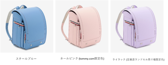 (ネールピンクはtommy.com限定販売、ライラックは百貨店ランドセル売り場のみで販売予定)