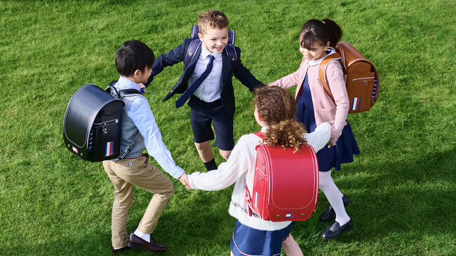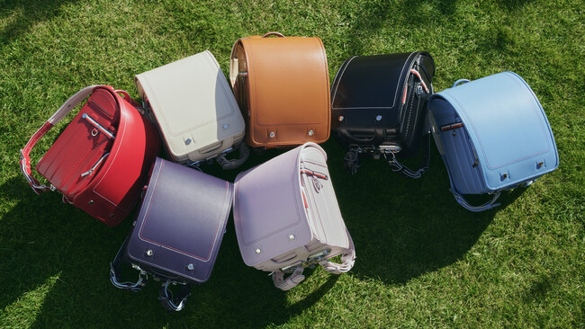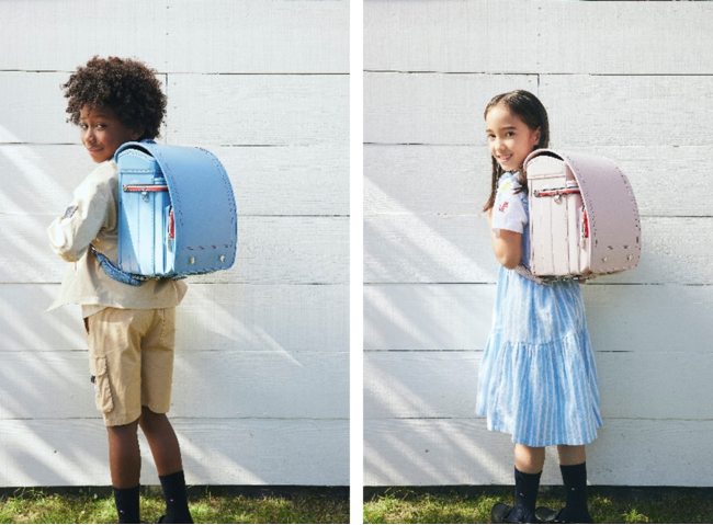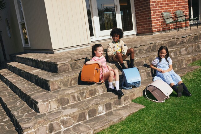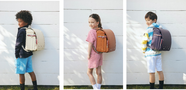 上品でソフトな色目の3つの新色は、トラッドでフォーマルなフォルムながら、周りとは一線を画すオシャレな佇まいで、お子様の毎日を彩ります。現在販売しているレッド、ネイビー、ブラック、キャメル、ソフトベージュに、新しくスチールブルー、ネールピンク、ライラックが加わり、全8色で展開します。