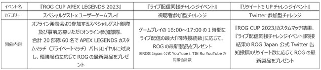 『ROG CUP APEX LEGENDS 2023』カスタムマッチ結果、『ライブ配信同接チャレンジイベント』同接結果