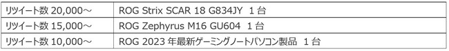 のROG Japan 公式Twitter告知投稿のリツイート数に応じて、ROGの最新製品をプレゼントいたします!