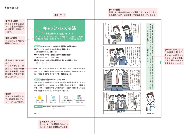 本書は、必要な時に気になる用語の解説を読み進めることで、デジタルトランスフォーメーション(DX)についての理解を4コマ漫画のストーリーを楽しみながら自然と深めることができるビジネス用語辞典です。タイムくんのシュールで笑えるキャラクターを楽しんでいただきながら、DXを推進する際の手引きとして活用いただけます。