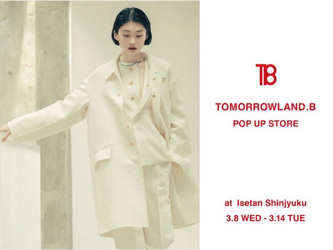 〈TOMORROWLAND .B〉POP UP STORE が伊勢丹新宿店本館3階=センターパーク/ザ・ステージに3月8日(水)から3月14日(火)まで期間限定でオープンいたします。
