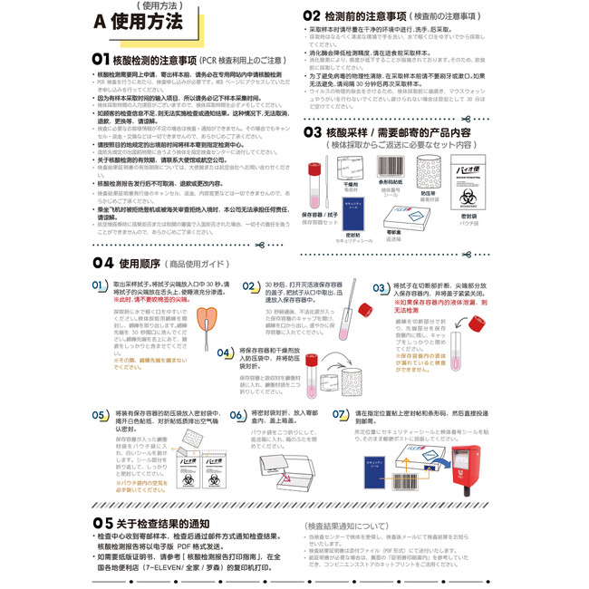 来店不要!中国渡航用証明書発行サービスは大変ご好評を頂いております。短時間で結果証明書が発行出来るため、急に海外出張が決まった場合でも対応可能。企業側で検査キットを事前にご購入していただければ、その日に検体を採取して、検査ラボに郵送すれば、最短翌日に結果証明書が発行いたします。タケショウショップでは、3月10日までにポイント10倍キャンペーンを実施いたします。ぜひ、この機会にお買い求めください。~无需来店!中国回国专用核酸检测服务深受好评。因为可以在短时间内发行检测报告书,所以即使突然决定海外出差也可以对应。如果公司事先购买好PCR核酸试剂盒的话,当天采集样本,邮寄到检查中心,最短第二天就可以收到检测报告书。Takesho商店,3月10日为止实施10倍积分活动。请勿错过良机。