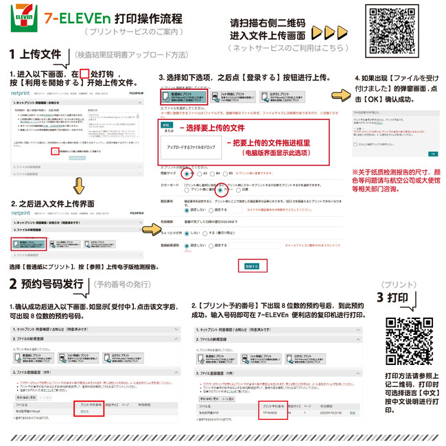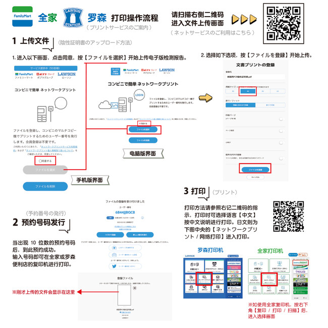 当然,即使是日本本国的客人,如果家里没有打印机无法打印时,也可以在便利店使用网上印刷服务。)
