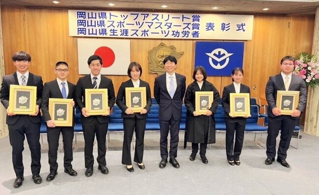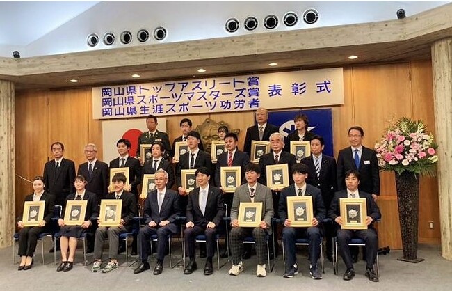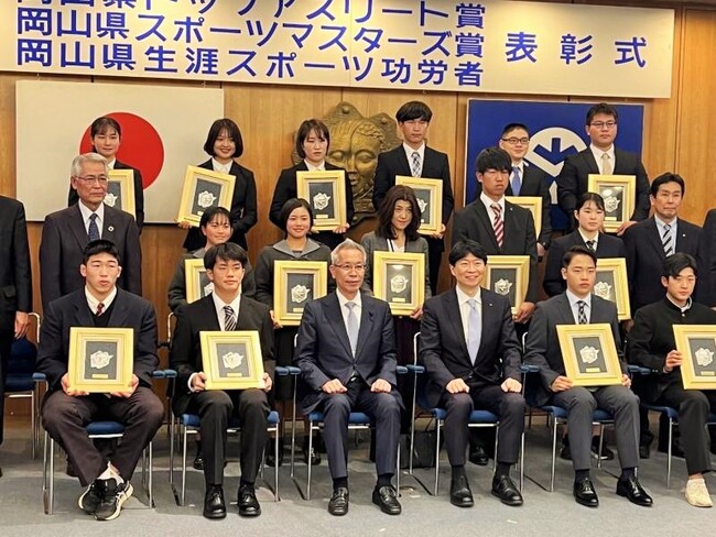 2023年2月17日、岡山県庁(岡山市北区)にて「2022年岡山県トップアスリート賞」の表彰式が執り行われ、64人14団体が表彰されました。国際大会や全国舞台で好成績を収めた選手らが対象で、栄誉賞8人、優秀賞55人14団体、功労賞1人が受賞しました。