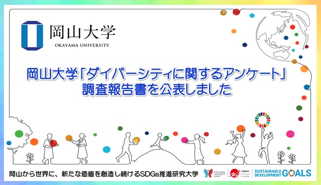 国立大学法人岡山大学(本部:岡山市北区、学長:槇野博史)ダイバーシティ推進本部では、このたび2021年2月に実施した「ダイバーシティに関するアンケート」の調査報告書を2023年2月28日に本学ホームページで公表しました。ご回答いただきました学内教職員、大学院生のみなさま、ありがとうございました。