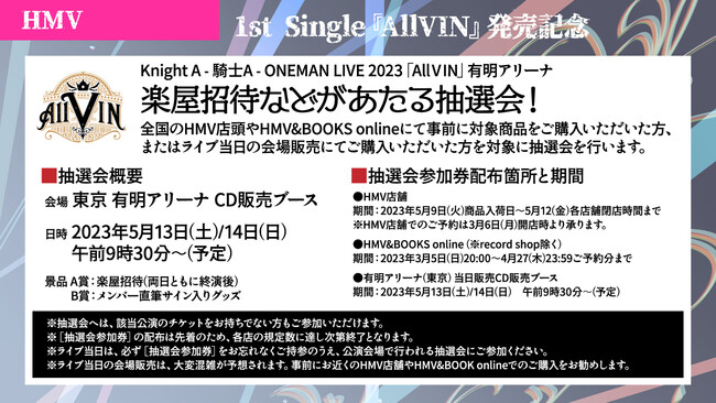 Knight A - 騎士A - ONEMAN LIVE 2023「AllVIN」有明アリーナ 楽屋招待などがあたる抽選会