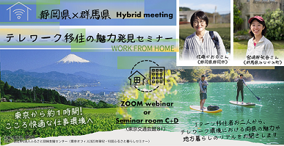 コロナ禍をきっかけに、東京からアクセスの良い地方への「テレワーク移住」の注目が高まっている中、東京から約1時間程度の距離にある静岡県と群馬県が初めて連携セミナーを開催します。