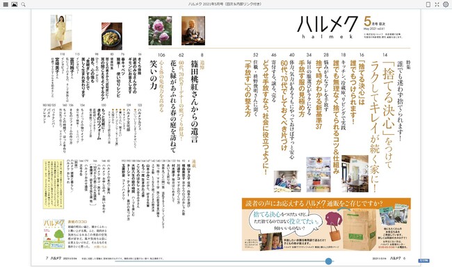 株式会社ハルメク(東京都千代田区、代表取締役社長:宮澤孝夫)は自社会員向けサービス「ハルメク365」の特典サービスとして、2023年3月より女性誌販売部数No.1の雑誌「ハルメク」の2ヶ月前の号から12ヶ月分のバックナンバーを読み放題で閲覧できる「ハルメク電子版」サービスを開始しました。コンテンツの登録・検索・閲覧を行うソリューションとしてアイドック株式会社(本社:東京都千代田区、代表取締役:成井 敦)の電子書籍配信プラットフォーム「bookend(ブックエンド)」を採用し、コンテンツの横断検索やセキュアなブラウザ閲覧を実現しています。