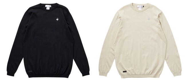 今回のニットは『ルコックスポルティフ』らしく、カジュアルシーンとスポーツシーンの両立も叶えています。デザイン面では、全体的に汎用性のあるシンプルなデザインながら、ワンポイントでロゴを配置することによりスポーティな要素を取り入れています。加えて、素材はポリエステルやポリエステルと綿の混紡糸で編んでいるため、サラッとした着心地と柔らかい素材感を併せ持っており、スポーツメーカーならではのこだわりも備えています。ゴルフシーン以外で着用しても”快適性”を感じられる機能を備えたアイテムです。