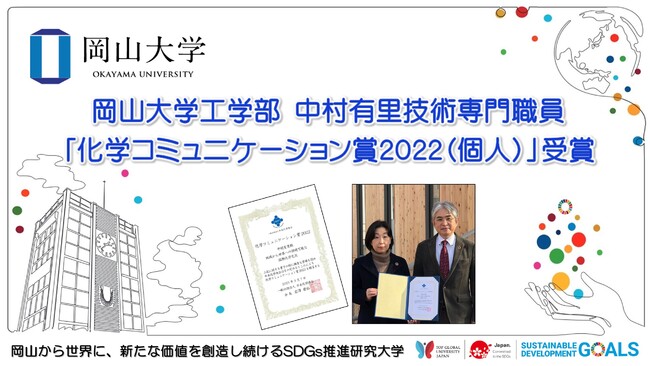 【岡山大学】工学部 中村有里技術専門職員「化学コミュニケーション賞2022(個人)」受賞