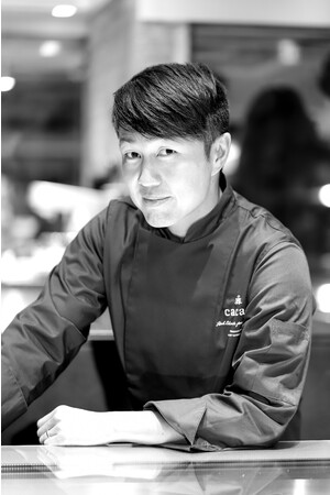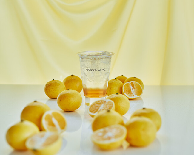 カカオのパルプ(果実部分)から作ったお酢、フルーティーなカカオビネガーに、爽やかな湘南ゴールドのピューレを合わせました。