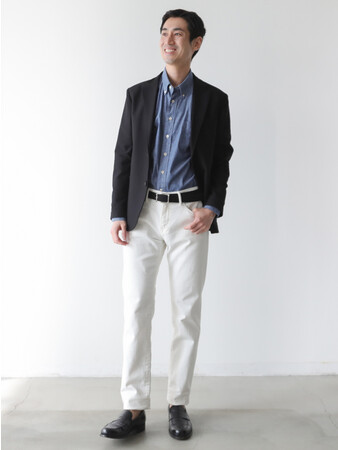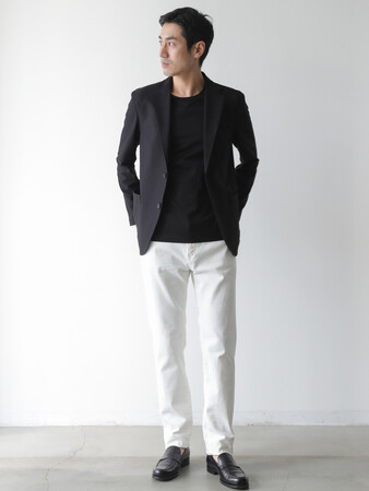 テーパードシルエットでジャケットにも合う