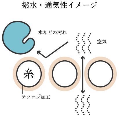 糸1本1本に撥水加工を施す独自加工で「通気性」も確保