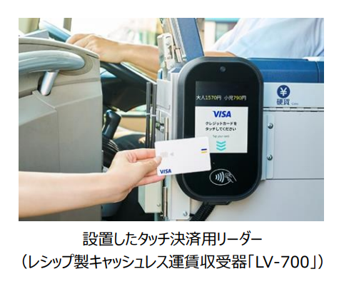 レシップ製のタッチ決済用リーダー(キャッシュレス運賃収受器「LV-700」)を「富山空港直行バス」の降車口に設置します。お客さまは、降車時にお持ちのVisaまたはJCBのタッチ決済に対応したカードやスマートフォンなどをリーダーにかざすだけで運賃を支払うことができます。タッチ決済の導入により、事前に現金のご用意や、券売機で乗車券をお買い求めいただくことなく、空港直行線のバスをご利用いただけます。併せて、ご移動からお買い物・ご宿泊などを、お手持ちのタッチ決済対応カード1枚でシームレスにお楽しみいただけます。また、海外で広く利用されているタッチ決済が利用可能となることで、訪日外国人客にとっての利便性も向上し、富山の観光都市としての魅力向上も期待されます。