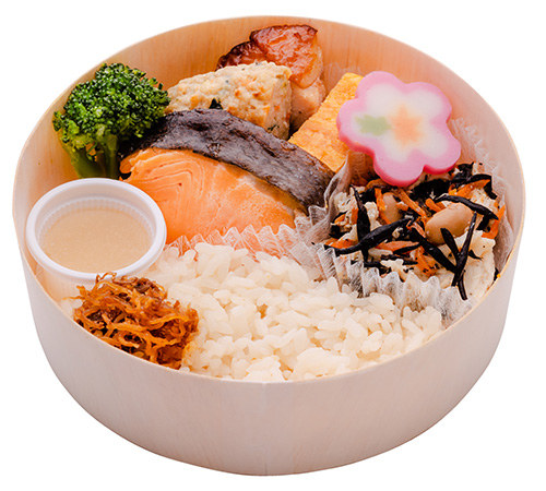 美味しさと低糖質にこだわったお弁当です。だし炊き込みご飯を少なめにして糖質は控えながら、だしに漬け込み焼いた鮭やだし焼き玉子、だしとろり(だし餡)をかけて味わう豆腐ハンバーグ、鶏照焼きなどのおかずでたんぱく質をしっかり摂ることができます。適正糖質に加え、たんぱく質の基準を満たし、ロカボプラスマークを表示しています。