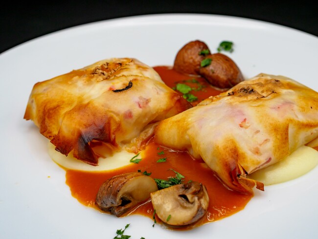 大ぶりにカットしたロブスターをパートフィロという薄いパイ生地で包んで焼き上げました。