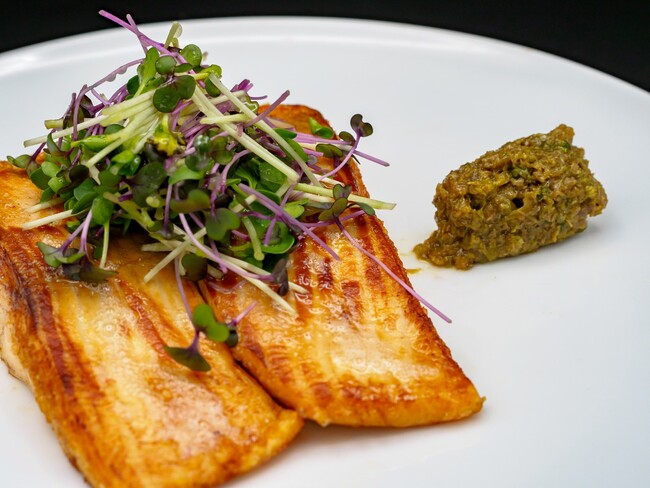 ふきのとうのほろ苦さとブルーチーズの豊かな香り、ほのかな塩味など、様々な風味が絶妙に絡み合い、桜鱒の旨味をより引き立たせてくれます。