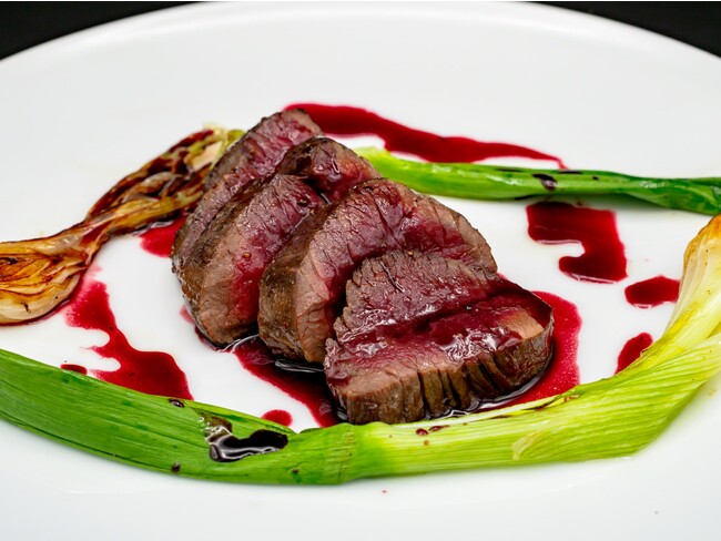 甘酸っぱいソースと甘みのあるオニオンヌーボーが蝦夷鹿の豊かな風味を際立たせてくれる一品です。