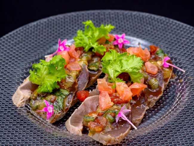 トマトとカツオの旨味の相乗効果で、余韻までお楽しみいただける前菜です。