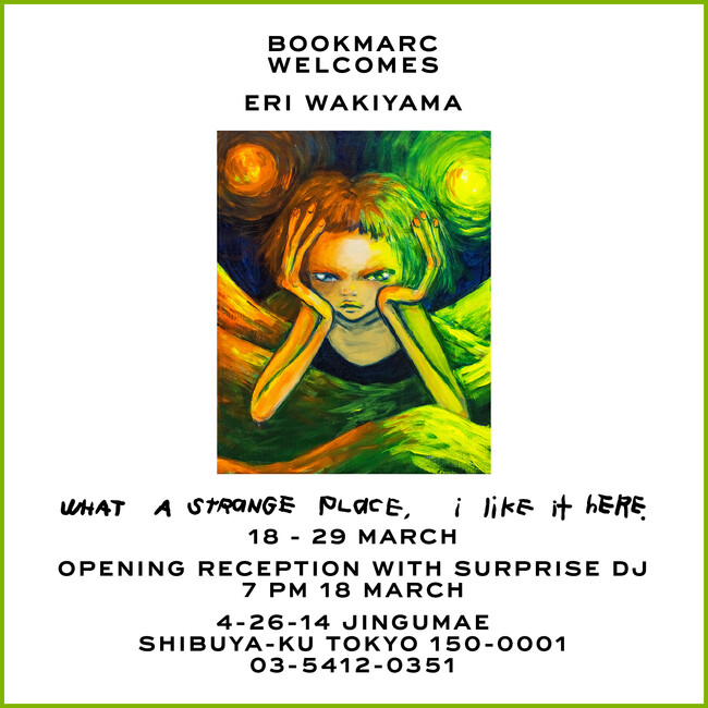 ニューヨーク発ファッションブランド「マーク ジェイコブス」が手掛けるブックストア「BOOKMARC(ブックマーク)」にて、アーティストでイラストレーターのEri Wakiyama氏の個展「What a strange place, I like it here」を開催します。彼女の作品群は その特徴でもある妖精のようなキャラクターが夢のようなシチュエーションに登場し、観るものに様々な感情的反応(想像、発見、友情、争い、そして孤独)を引き起こします。ニューヨークを拠点に多くの個展を精力的に行いながら、様々なグループ展にも参加。近年では Heaven by Marc Jacobs へのコントリビュートをはじめ国際的なファッションブランドとのコラボレーションでも知られ、メジャーファッション誌へのイラストレーションの提供で人気を博しています。本展の初日3/18(土)19時からオープニング・レセプションを開催。ゲストDJにERIKO NAKAO氏と、AMBUSH(R)のYOON氏を迎えたスペシャルパーティーとなります。皆様のご来店お待ちしております。