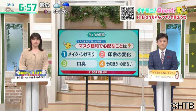 HTB onちゃんアプリは、ニュース、天気などの生活情報に加え、視聴者参加型企画として、朝の情報番組「イチモ二!」の「イチモ二!Question」、夕方の情報番組「イチオシ!!」の視聴者からのご意見紹介コーナー「ヒトコト」など、アプリ連動企画を行ってきました。ほかにもプレゼントキャンペーン、ニュースやスポーツ中継などの番組連動企画など、視聴者とのコミュニケーションツールとしての活用が、ダウンロード数増加につながりました。