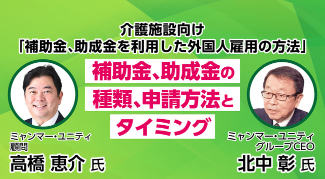 【3/16(木)開催 介護業界向けウェビナー】介護施設向け「補助金、助成金を利用した外国人雇用の方法」補助金、助成金の種類、申請方法とタイミング 登壇:ミャンマー・ユニティ 主催:CareTEX事務局