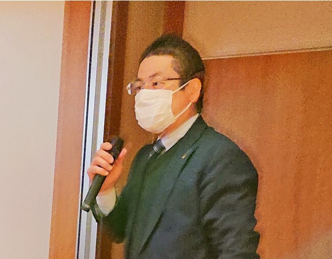 本会は、幹事役を務める長谷川伸城氏(法学部卒)の司会により進行。はじめに、東京駐在の佐藤法仁副理事(歯学部卒)から本学広報誌「いちょう並木」をもとに大学動向について説明が行われました。特に1月26日に開催された岡山大学共育共創コモンズ(通称:OUX)の完成披露式典の一連の動きについて詳細に紹介されました。その後、那須理事から来年度の本学のビジョンや取り組みなどについて紹介が行われ、参加者らと活発な意見交換が行われました。