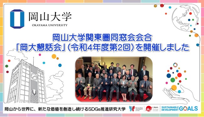 国立大学法人岡山大学(本部:岡山市北区、学長:槇野博史)の全学同窓会組織「岡山大学Alumni」は、活動の一つとして、関東圏同窓生有志で構成される「岡大懇話会」の令和4年度第2回目の会合を2023年2月28日、東京都港区にて開催しました。